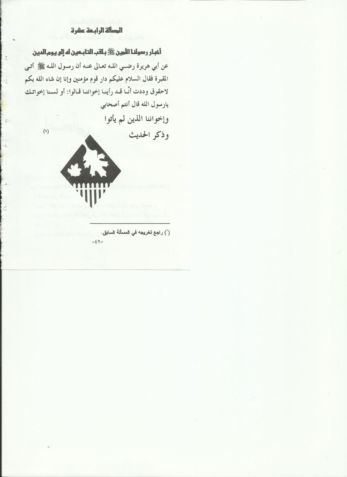 قال المؤلف عفا الله عنه المسألة الرابعة عشرة :