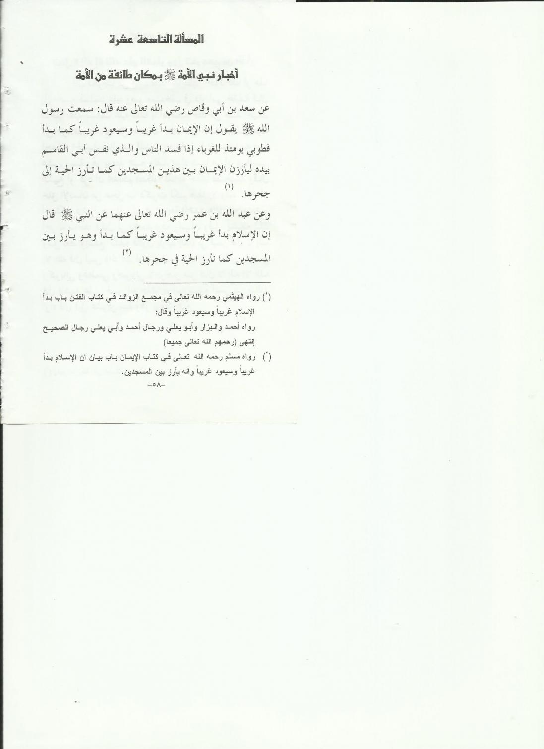 أخبار نبي الأمة صلى الله عليه وسلـم بمكان طائفة من الأمة .