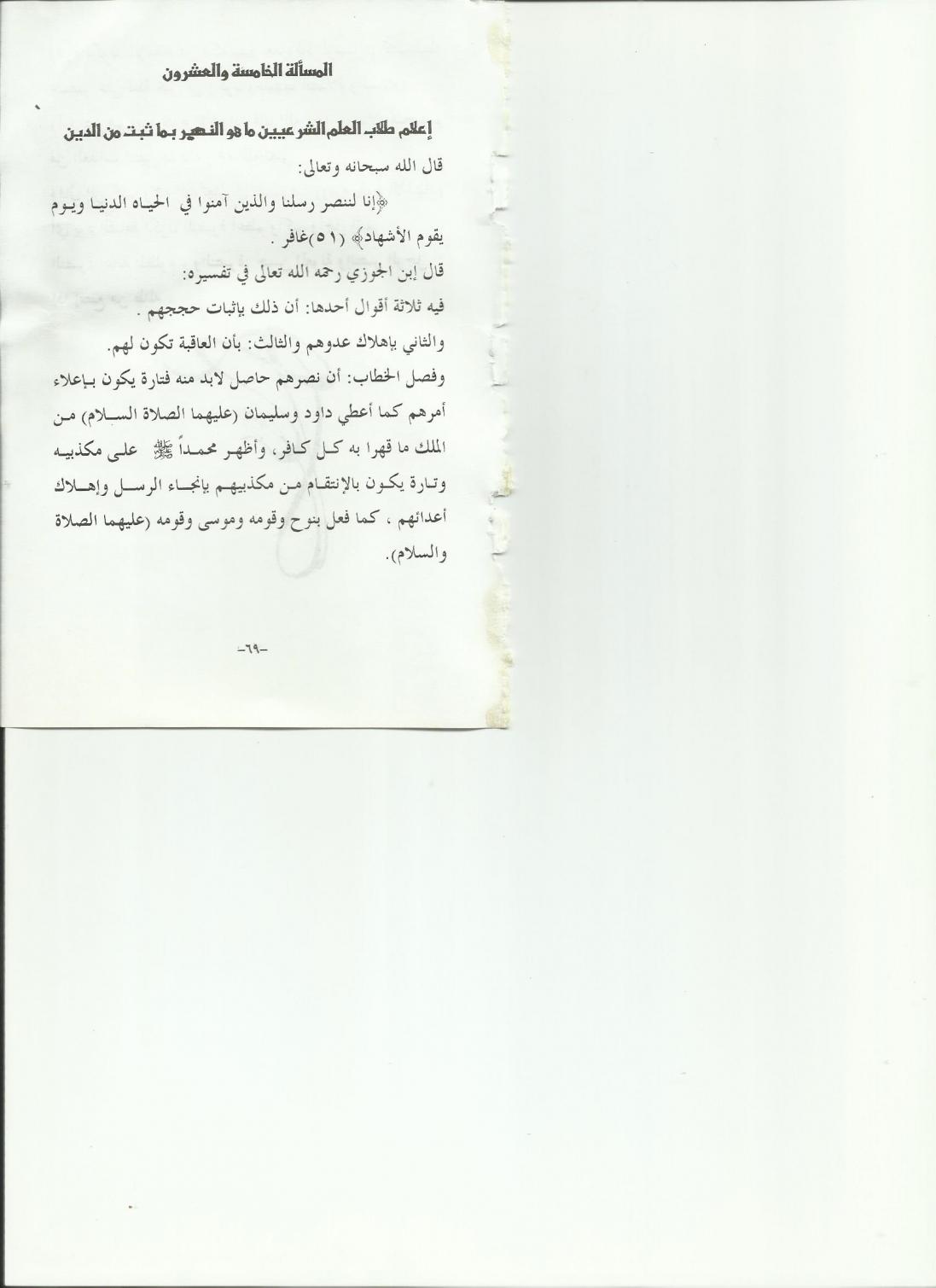افتراضي قال المؤلف عفا الله عنه المسألة الخامسة و العشرون : إعلام طلاب العلم الشرعيين
