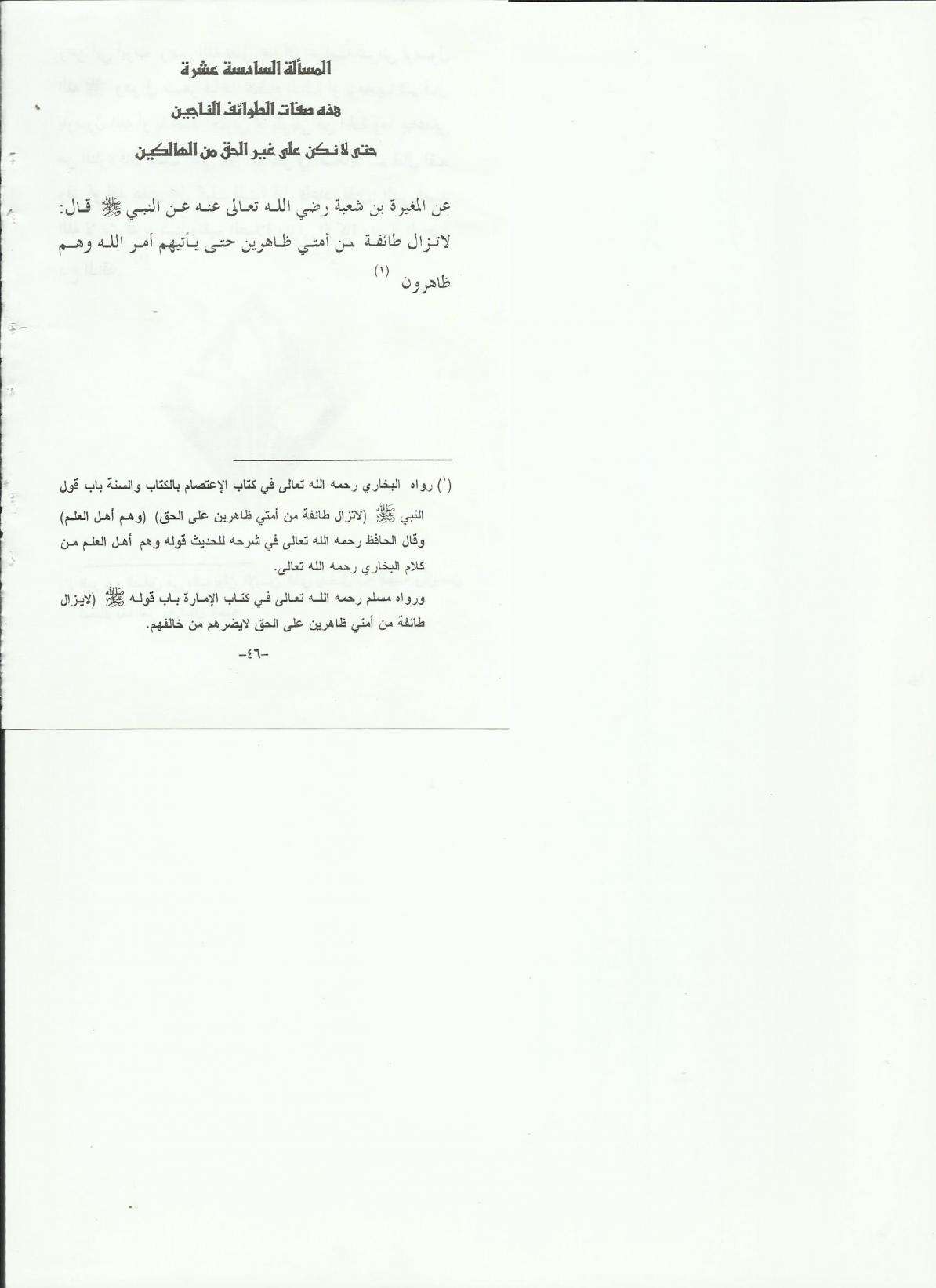 افتراضي قال المؤلف عفا الله عنه المسألة السادسة عشرة : هذه صفات الطوائف الناجين