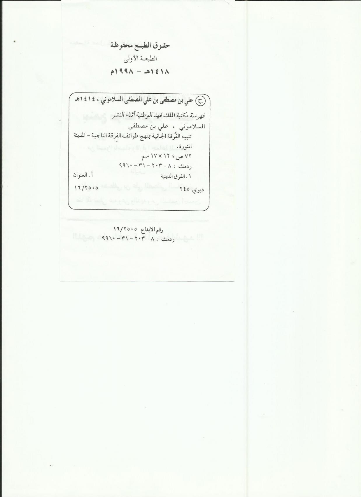 كتب وبحوث ورسائل ومسائل جديدة للشيخ / علي بن مصطفى بن علي المصطفى السلاموني